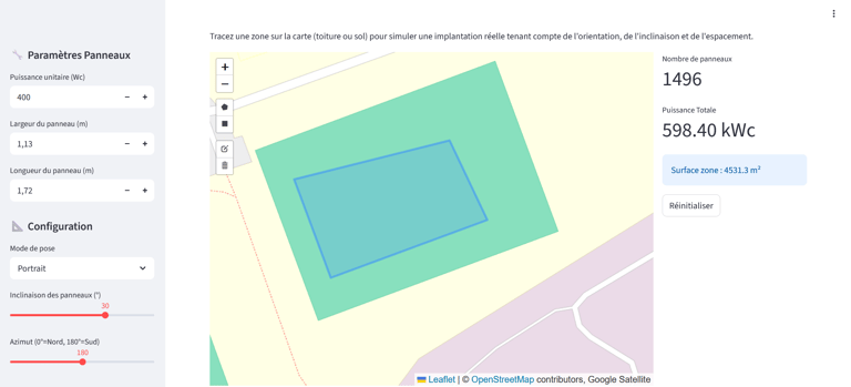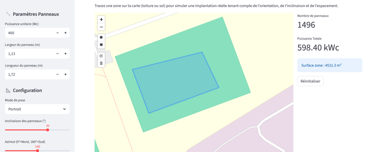 Par exemple, nous avons développé une application dédiée au secteur de l’énergie permettant de calculer la production prévisionnelle d’un parc solaire en fonction de nombreux paramètres, tels que la localisation, l’orientation des panneaux, les conditions météorologiques ou les caractéristiques techniques des installations. Cet outil offre aux utilisateurs une estimation exploitable pour la planification et l’optimisation des projets énergétiques.